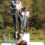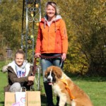 Pejsků se na Podmitrov sjelo opravdu hodně, v sobotu jsme napočítali 44 moskeváčků (ne všichni však soutěžili), ve věkovém rozpětí 3,5 měsíce až 11 let. Počasí přálo, pan figurant byl perfektní jako vždy, pejskové nesmírně šikovní, jen ti páníčci jim to občas kazili :-). V sobotu večer nás již podruhé navštívil MVDr. Štourač, který nám odpovídal při besedě na naše dotazy, které se týkaly zdraví, vývoje a výživy našich obříků.